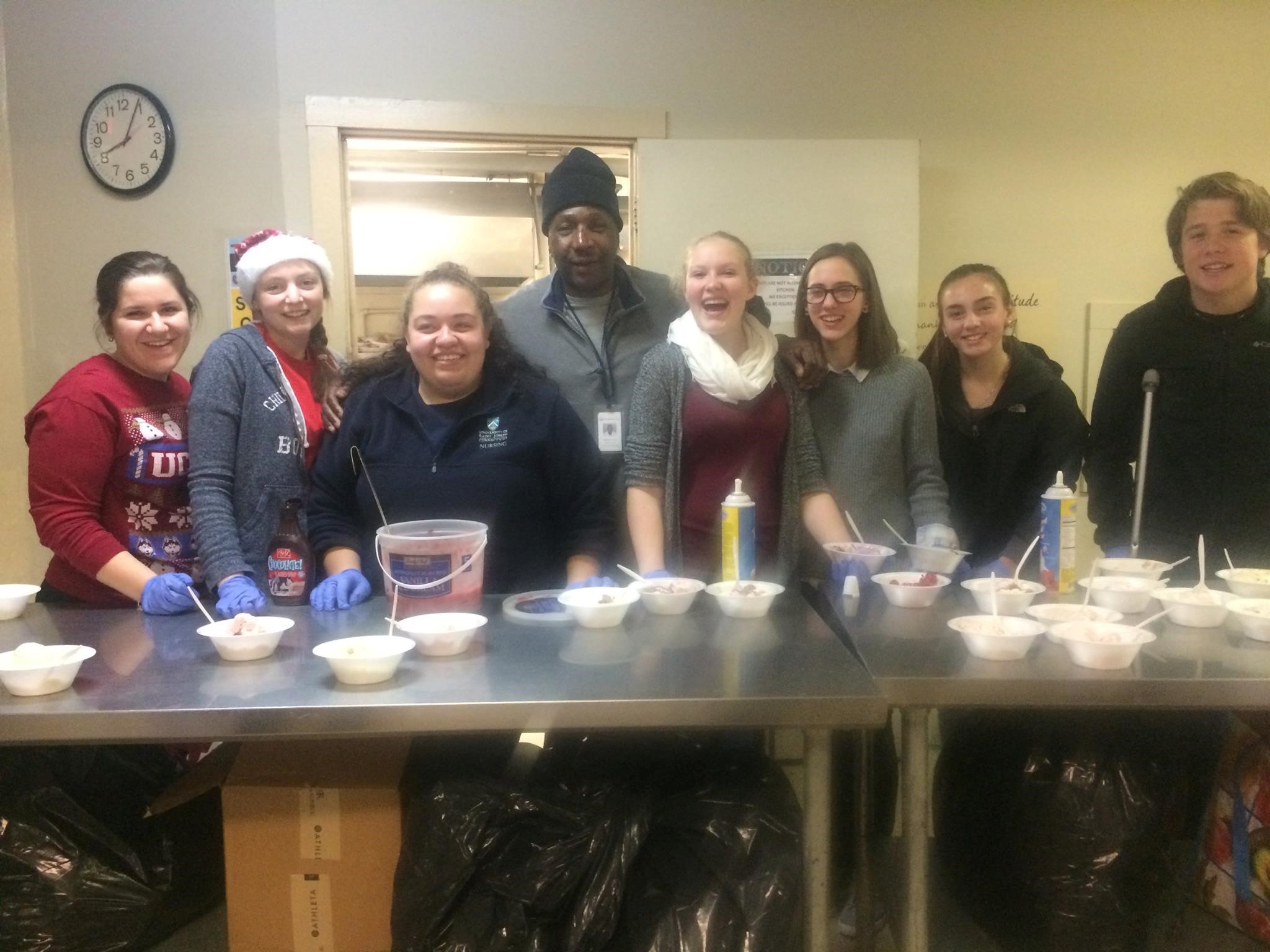 To kick off the holiday festivities, the men served at the shelter had a festive visit from the fabulous Grinder Ladies! In addition to their delicious meal of meatball grinders made with love, they came with live music and carols, holiday gifts that included a backpack filled with candy, deck of cards, peanut butter crackers, granola bar, cookies, package of tissues and a mug with a hot chocolate mix and coffee and a tea bag and a fruit punch stick along with the $5.00 Dunkin Donuts card! They also set-up a table with t-shirts, socks and flip flops in various sizes for the residents to choose from The Shelter almost couldn’t hold all the joy and happiness this wonderful group brought with them! Thank you Grinder Ladies, and all those who supported your efforts, for sharing your blessings with those we serve.