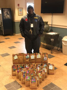 The Third Grade Religious Education students, parents and grandparents of Saint Mary’s Church in Simsbury got together on their Annual Ministry Learning Project Day to create blessing bags for the Outreach Clients of ImmaCare, who live outdoors. The bags included a card with well wishes, healthy snacks, socks, gloves and toiletry items. Pictured here is Tony Mack, ImmaCare’s Mobile Outreach Case Manager with some of the lovely blessing bags. We are blessed to have this support from Lori Oleasz and the St. Mary’s 3rd Grade Religious Education students and families!