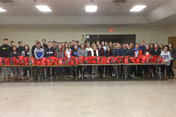 One Sunday this December, the Confirmation class from St. Josephine Bakhita Parish put together bags for the ImmaCare Shelter clients. The drawstring backpacks were filled with goodies, including candy, hot chocolate, two $5 Dunkin Donuts gift cards, a deck of cards, granola bars, and other snacks. The bags are to be donated during the Grinder Ladies’ Christmas Party on December 22. At the party, each client will also receive a new tee shirt and new pair of socks.