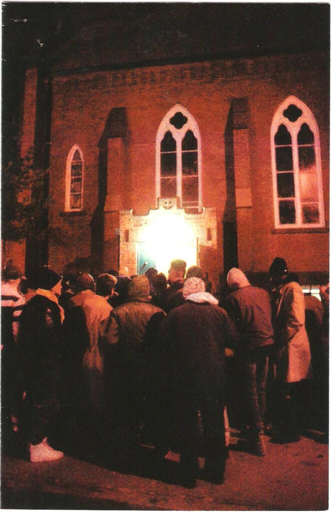 This picture is part of ImmaCare’s history, back during a time when people experiencing homelessness needed to wait outside, on a line, sometimes for hours, prior to being let inside the Shelter at 4PM. Today, ImmaCare’s Shelter is a 24-7 operation, and the entire Shelter System has been revamped into a much more humane process.