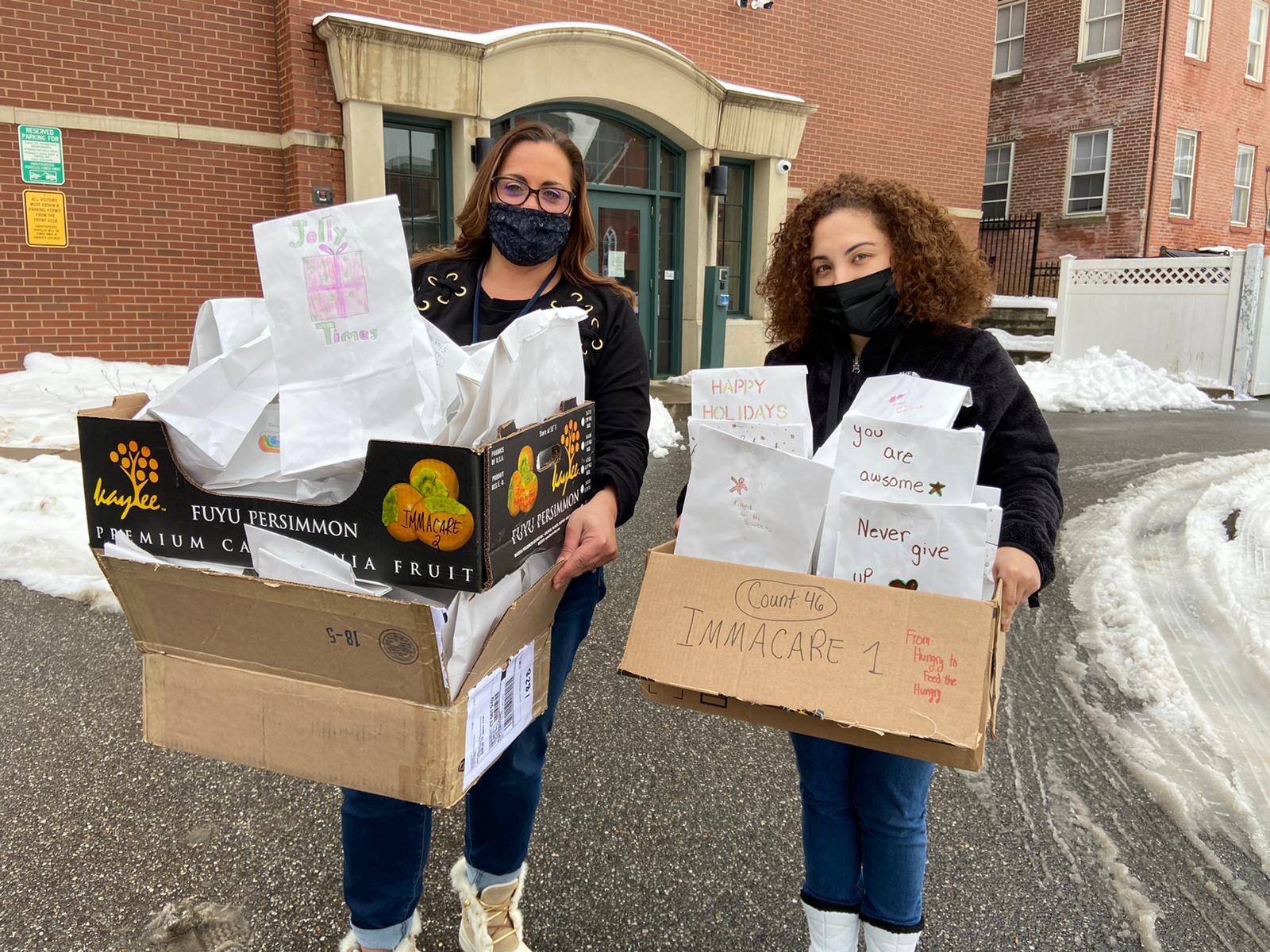 We are so grateful to the volunteers and sponsors of Hungry to Feed the Hungry who put these much-needed hygiene bags together just in time for the holidays. ImmaCare’s Teresa Wierbicki and Stephanie Cancel were able to meet with the volunteers who even put a personalized touch on each and every bag! Thank you for your support!